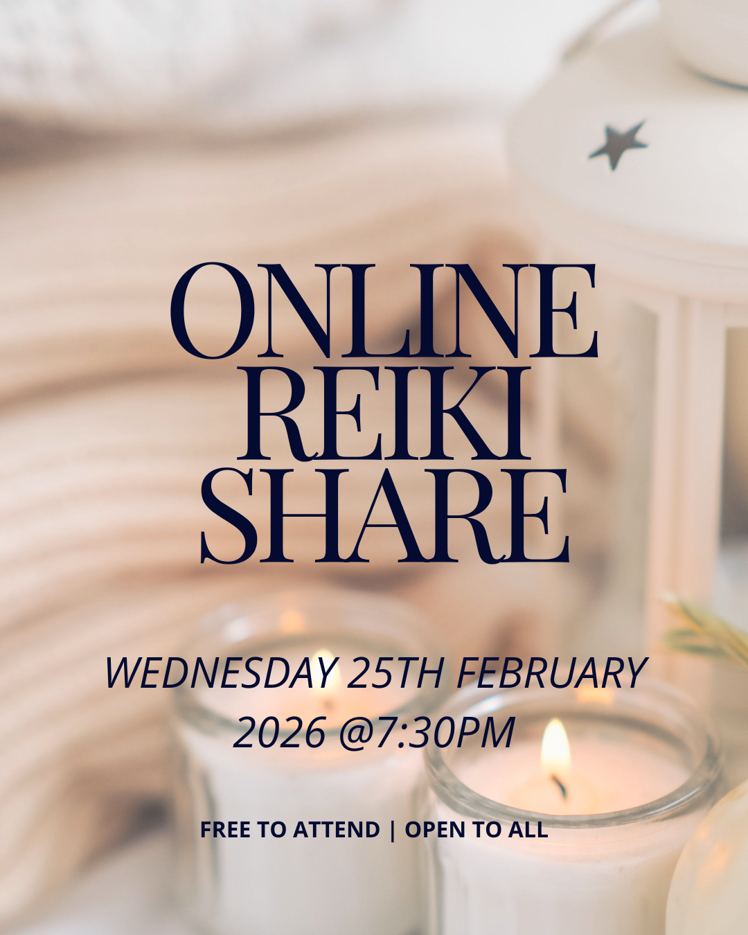 Welcome to our events space — a calm and supportive place to connect, relax and receive Reiki energy with others. Below you’ll find our current Free Online Reiki Shares (open to all) and information about other upcoming healing experiences and workshops.